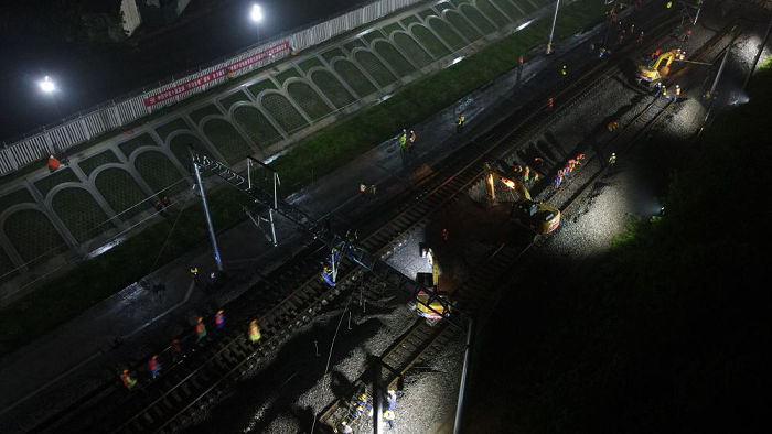 26日晚11時許,雙線撥接工程開始施工,各個工種各司其職,各類設備輪番上陣。