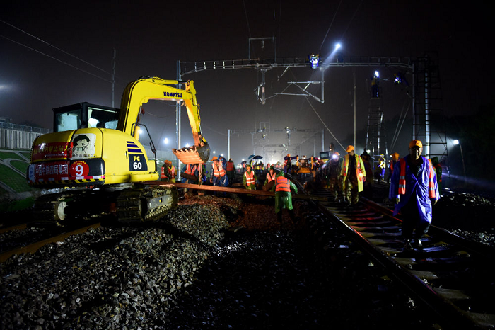 “我們在1.4公里的施工段上投入作業(yè)人員達1200人,出動設備90余臺套,需要完成道砟扒除、鋸軌、起道、撥道、接軌、人工搗固、線路調試等工序?!敝需F四局引江濟淮滬蓉鐵路改建工程項目部負責人張新意說。