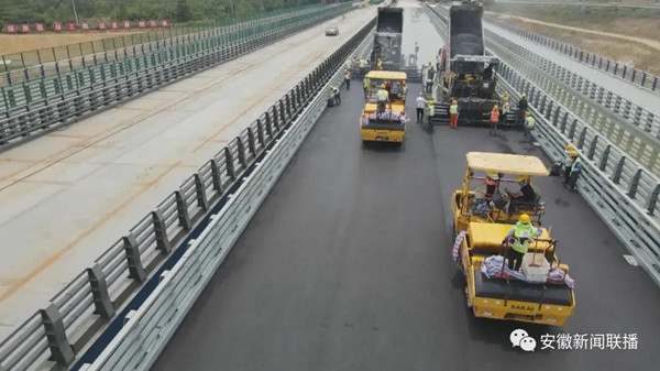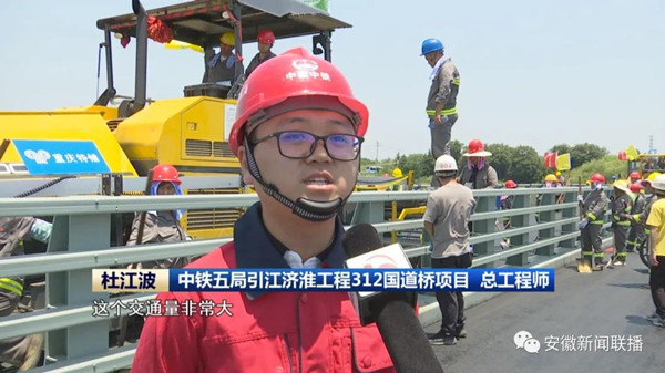 合肥西大門的312國道,交通量非常大,我們項目部也是攻堅克難,盡早地把這個橋開通,這個鋪裝完成以后,進(jìn)行整個橋的動靜態(tài)試驗,七月下旬交工驗收。