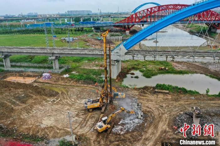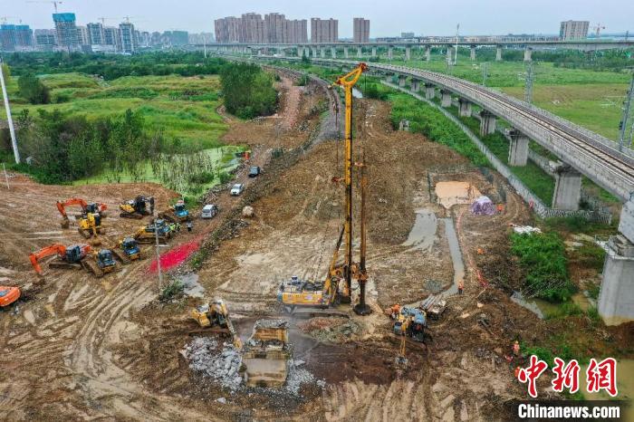 8月14日,引江濟(jì)淮工程(安徽段)合(肥)九(江)鐵路改建首根樁基順利開鉆施工。 馬春澧 攝