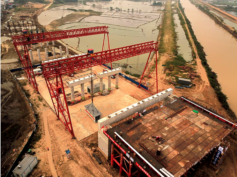 引江濟淮工程羅埠大橋首節(jié)段鋼箱梁成功架設(shè)