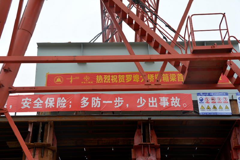 常規(guī)大江大河上的特大橋箱梁安裝普遍采用整構(gòu)件吊裝方法,而羅埠大橋由于河道過窄,大型船舶無法通行,施工方采用“構(gòu)件組拼+滑移”工藝實施箱梁安裝。針對吊裝現(xiàn)場情況特殊,羅埠大橋項目技術(shù)總工黃翔說:“從小件變成大件,只能散件拼裝,這樣造成施工難度,小件變成大件形成整體后,通過拖拉滑移工藝讓鋼梁就位進行分段安裝?!?span style="font-family:宋體;font-size:10.5pt;font-weight:normal;">