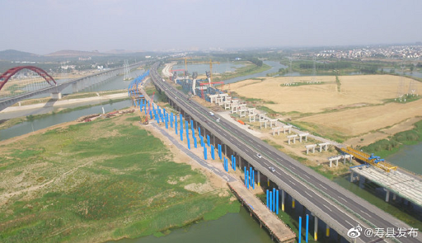 近日,S12滁新高速高速淮河大橋四號橋,首跨鋼板組合梁主梁在兩臺吊機(jī)的吊送下精確落位,標(biāo)志著引江濟(jì)淮工程滁新高速S12淮南段淮河大橋四號橋保通線正式進(jìn)入上部結(jié)構(gòu)施工階段,距離8月底臨時保通線通車的目標(biāo)又向前邁出了堅實的一步。